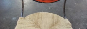 These are Art-Deco chairs with hand-woven rush seats that we replaced. The left chair shows the beginning of the rushing and the chair on the right shows our finished product.